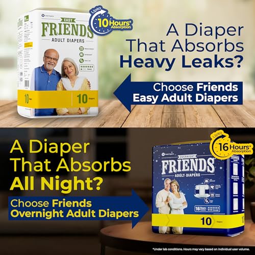 Friends Easy Adult Diapers Tape Style - 40 Count (Extra Large) with odour lock, Unisex, Leakproof, Wetness Indicator and Anti-Bacterial Absorbent Core- Waist Size 35.43-65.35 inch; 90-166 cm