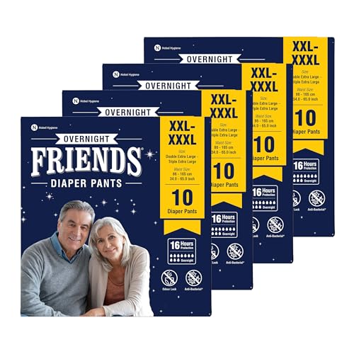 Friends Overnight Adult Diapers Pants Style - 40 Count (Double Extra Large) with odour lock, Unisex, Leakproof, Elastic Waist and Anti-Bacterial Absorbent Core - Waist Size 34-65 Inch; 86-165 cm