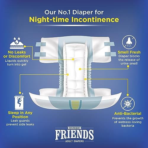 Friends Overnight Adult Diapers Tape Style - 30 Count (Medium) with with odour lock, Unisex, Leakproof and Anti-Bacterial Absorbent Core - Waist Size 28.35-51.18 inch; 72-130 cm