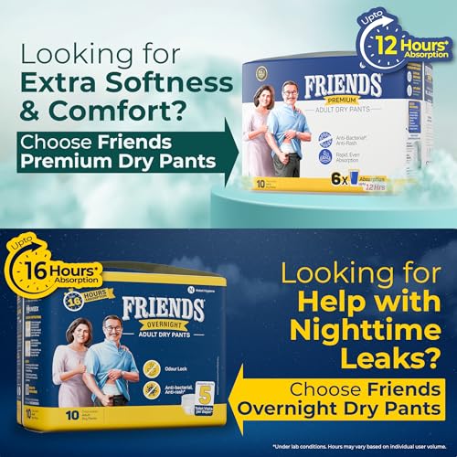 • Friends Adult Diaper Pants Medium offer Upto 10 HOURS PROTECTION AGAINST LEAKAGE MOISTURE and have ODOUR LOCK