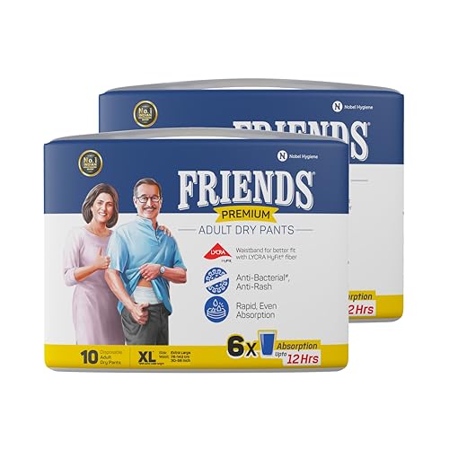 • Friends Adult Diapers extra-large size pant style with 12 hours of protection are also available in sizes M and L.