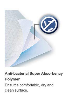 • ANTI BACTERIAL SUPER ABSORBENCY POLYMER ensures COMFORTABLE DRY and CLEAN surface