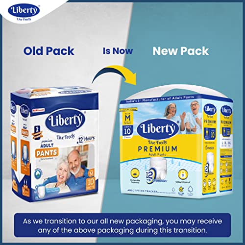Liberty Premium Adult Diaper Pants, Medium (M) Size, 20 Count, Waist Size (61-115cm | 24-45 inches), Unisex, Leak Proof, Extra Elastics, High Absorbency, 12 Hrs protection, Pack of 2, 10 count/pack