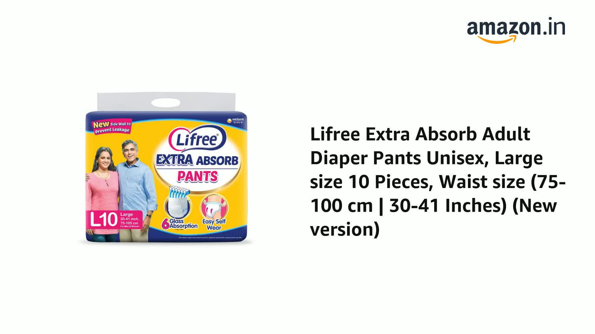 Lifree Extra Absorb Super Pants|Unisex Adult Diaper|Pant Style|Use Upto 12 Hours|6-Glass Absorption|Quick Dry Sheet|Prevents Leakage|Prevents Heaviness|Size L( 35-49 Inches/90-125 Cms)|Count 10