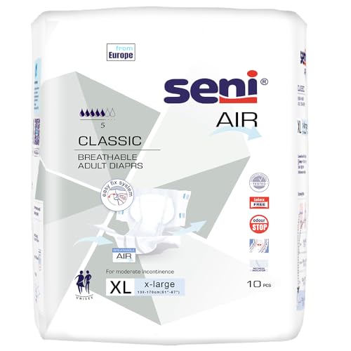 SENI Air Classic Breathable Adult Diapers - Extra Large (XL), 10 Piece