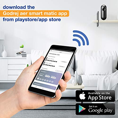 Godrej aer Smart matic is a range of Bluetooth-enabled air freshener diffusers available in two fragrances. You can control your device with the Godrej aer Smart Matic app: Use the âSpray Now' button for an instant spray of fragrance âOn/Off' button to switch the device on/off and âSpray Intervals' button to change the spray interval. The air freshener automatic spray is sure to adorn your interior spaces and works perfectly be it your living room bedroom or office spaces. The automatic room freshener can easily be wall mounted with the provided mounting hole at the back or placed on a shelf with the inbuilt stand. You can also use the âSmart Scheduler' to schedule your device for complete automation. Each refill pack guarantees 2200 sprays and lasts up to 60 days (under low settings). At the end of its cycle just replace the air freshener refill with any of our 6 fragrances- Alive Passion Violet Valley Bloom Fresh Lush Green Petal Crush Pink and Cool Surf Blue.