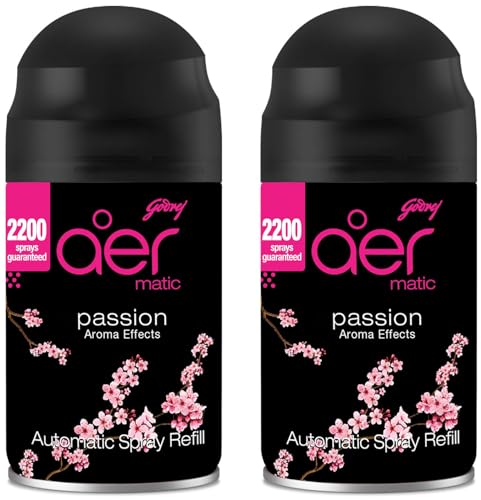 Godrej aer Matic Refill - Automatic Room Fresheners | Passion | 2200 Sprays Guaranteed | Lasts up to 60 days (225ml) (Pack of 2)