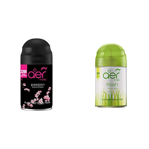 Godrej Aer Smart Matic Automatic Air Freshener Refill Premium Fragrance - Passion (2200 Sprays) And Automatic Air Freshener Refill Pack - Fresh Lush Green (225 Ml)