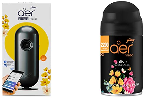 Godrej aer Smart Matic Kit - BLUETOOTH ENABLED Automatic Air Freshener spray| Alive (225ml) & Smart Matic Refill - BLUETOOTH ENABLED Automatic Air Freshener Spray | Alive (225ml)