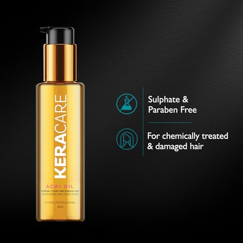 The Godrej Professional Keracare Acai Oil is a paraben and sulphate-free gentle hair oil that provides your hair with essential nourishment and shine. Infused with Acai berries and antioxidants this acai oil serum helps revive dry and porous hair. You can use this specially formulated Acai hair oil to keep your locks moisturised and healthy. So why not give your hair the nourishment it deserves with the Godrej Professional Keracare Acai Oil at an affordable price! Get ready to experience soft silky and healthy hair with this amazing acai oil hair serum.