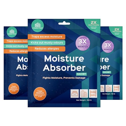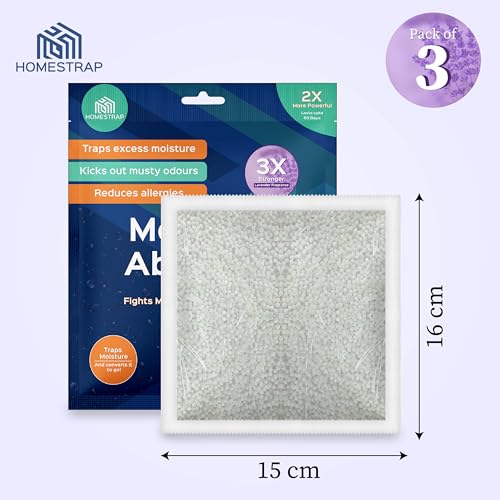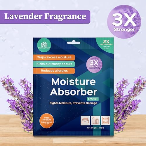 Homestrap Moisture Absorber Sachet (Pack of 3) | Dehumidifier Humidity Absorber For Wardrobe Drawers Room And Car |Fight against Moisture Mould Fungus (Lavender|Sachet)