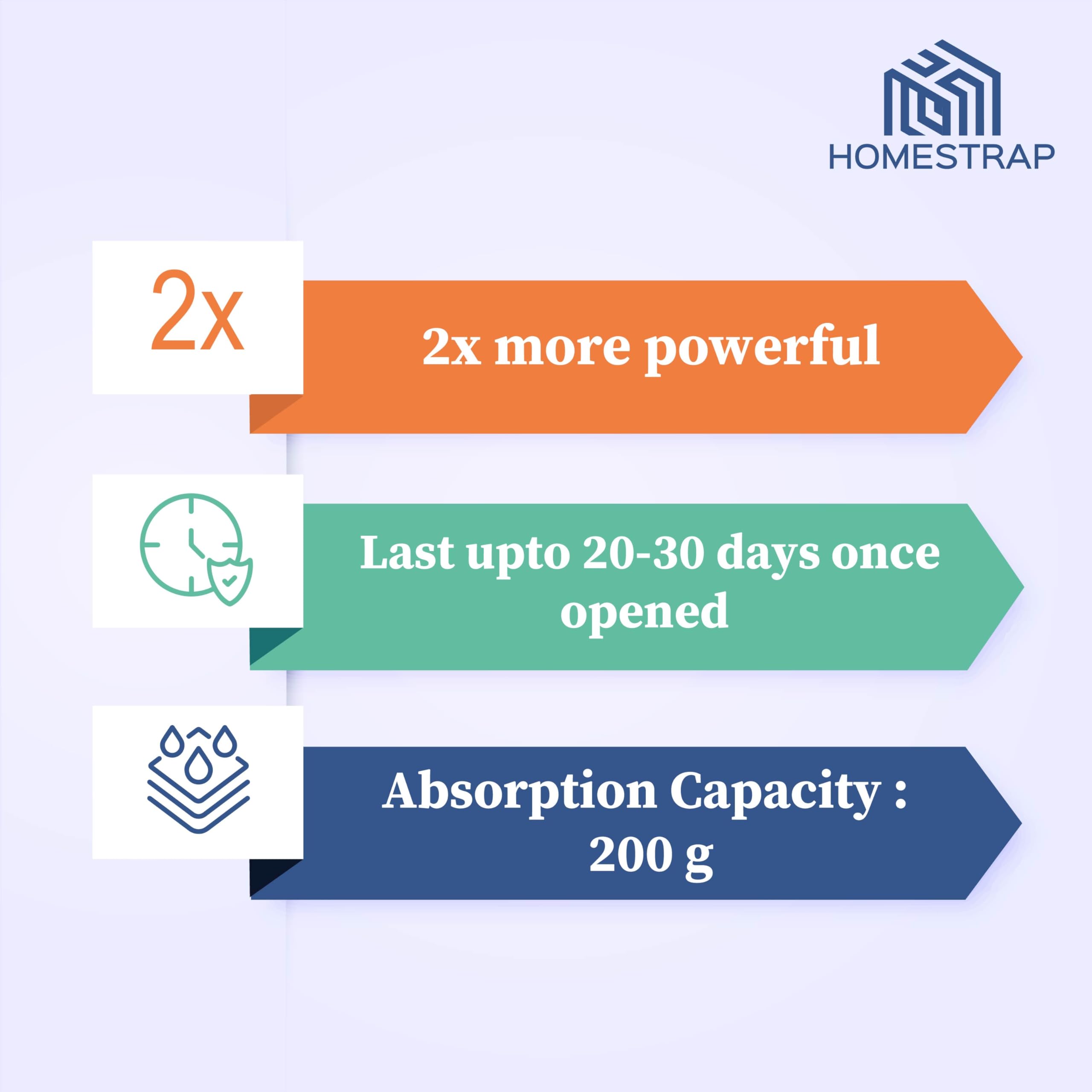 Discover the soothing power of lavender with HomeStrap's Lavender Fragrance Moisture Absorber Sachet. Crafted to combat moisture and infuse your space with a calming aroma this 100g sachet is your go-to solution for a fresher more inviting environment. Our advanced formula effortlessly absorbs excess moisture transforming it into a gel while releasing the delicate fragrance of lavender. Ideal for wardrobes closets bathrooms and more let HomeStrap Lavender Fragrance Moisture Absorber Sachet redefine your home's atmosphere with relaxation and purity. Experience the ultimate blend of functionality and fragrance with our Moisture Absorber Sachet.