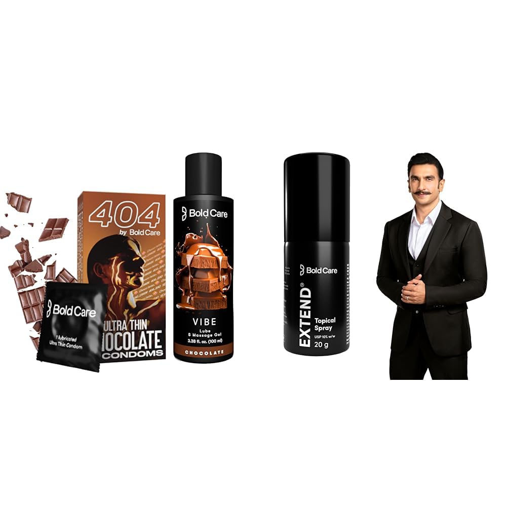 Bold Care Complete Sex Pack (Multi-textured Condoms + Last Long Spray + Chocolate Lubricant)