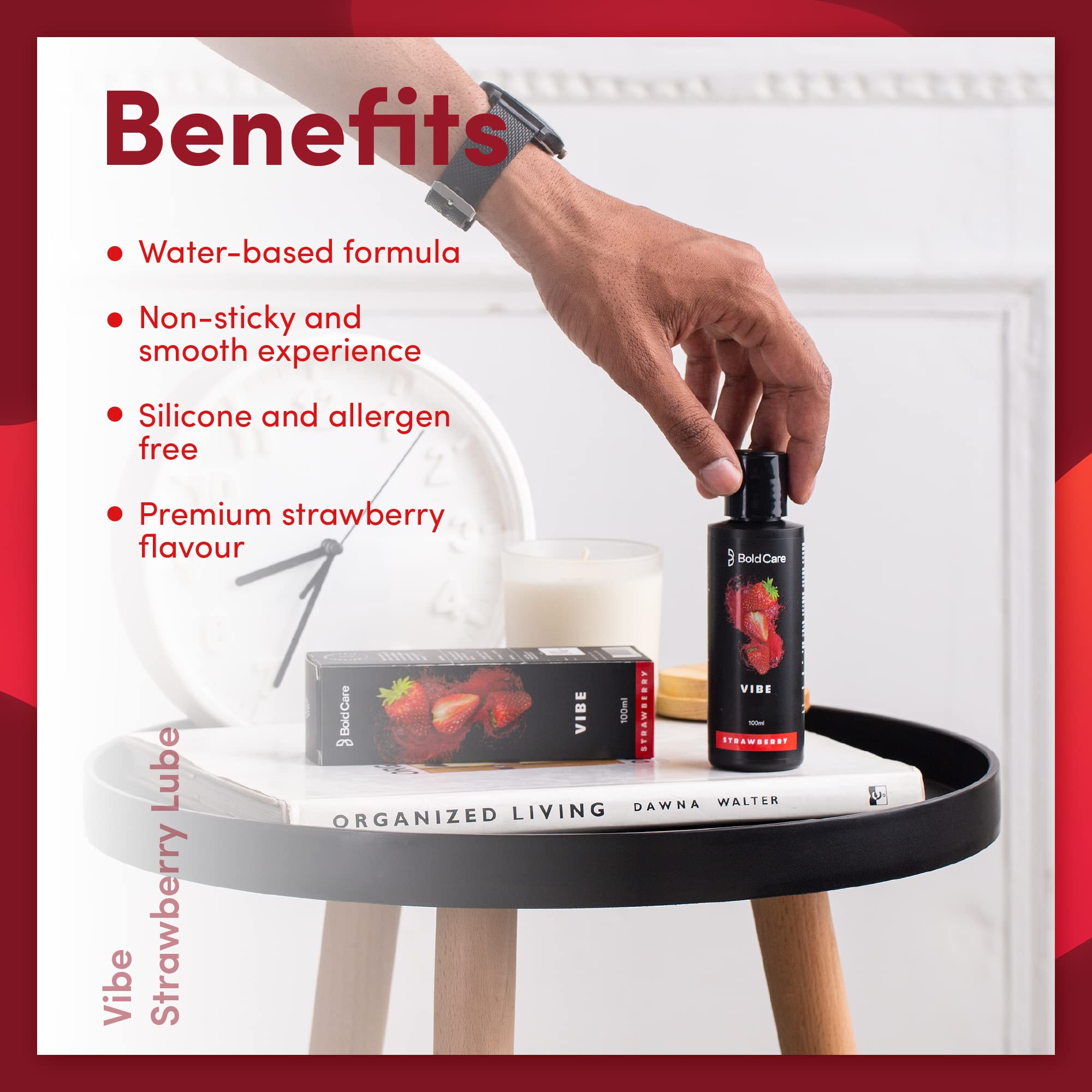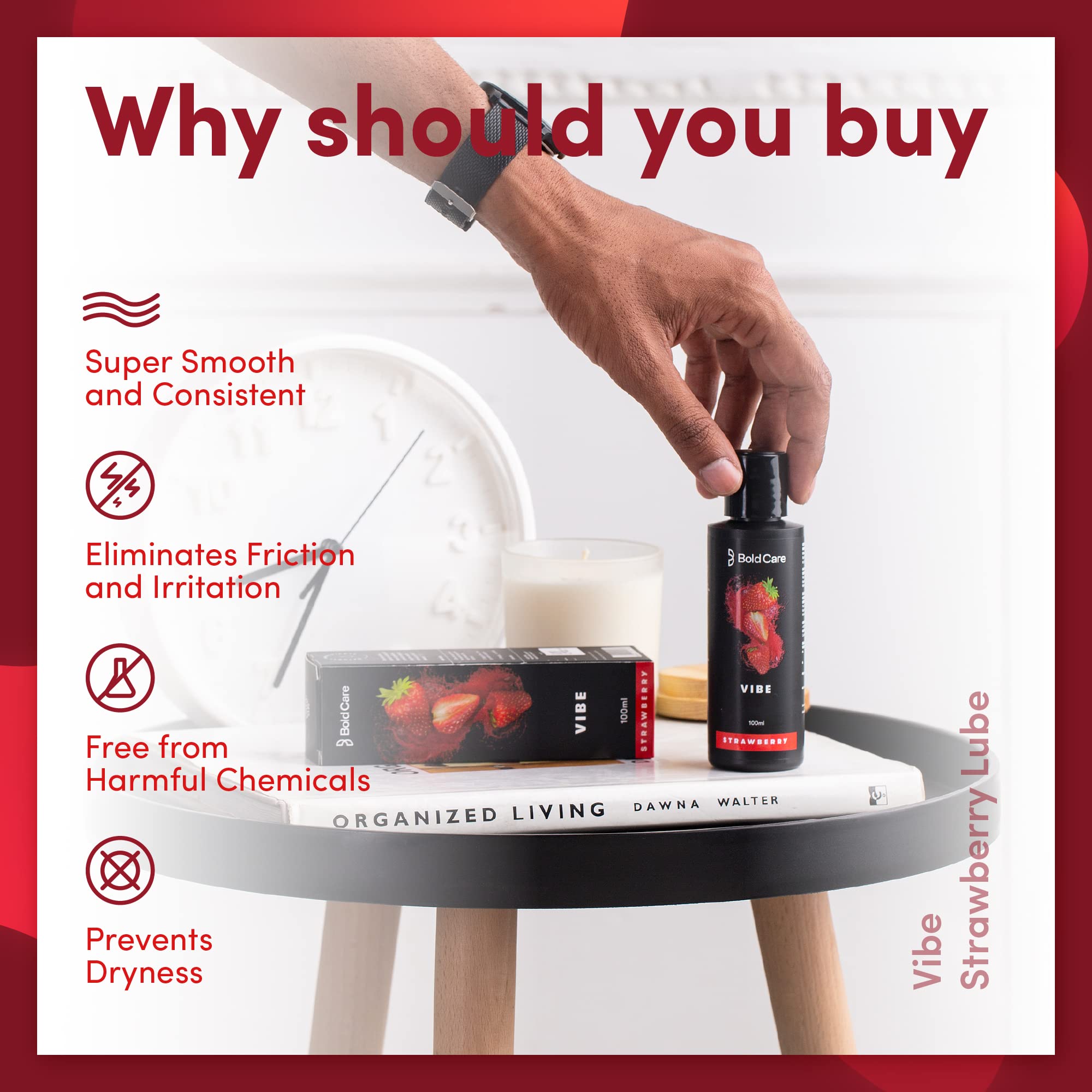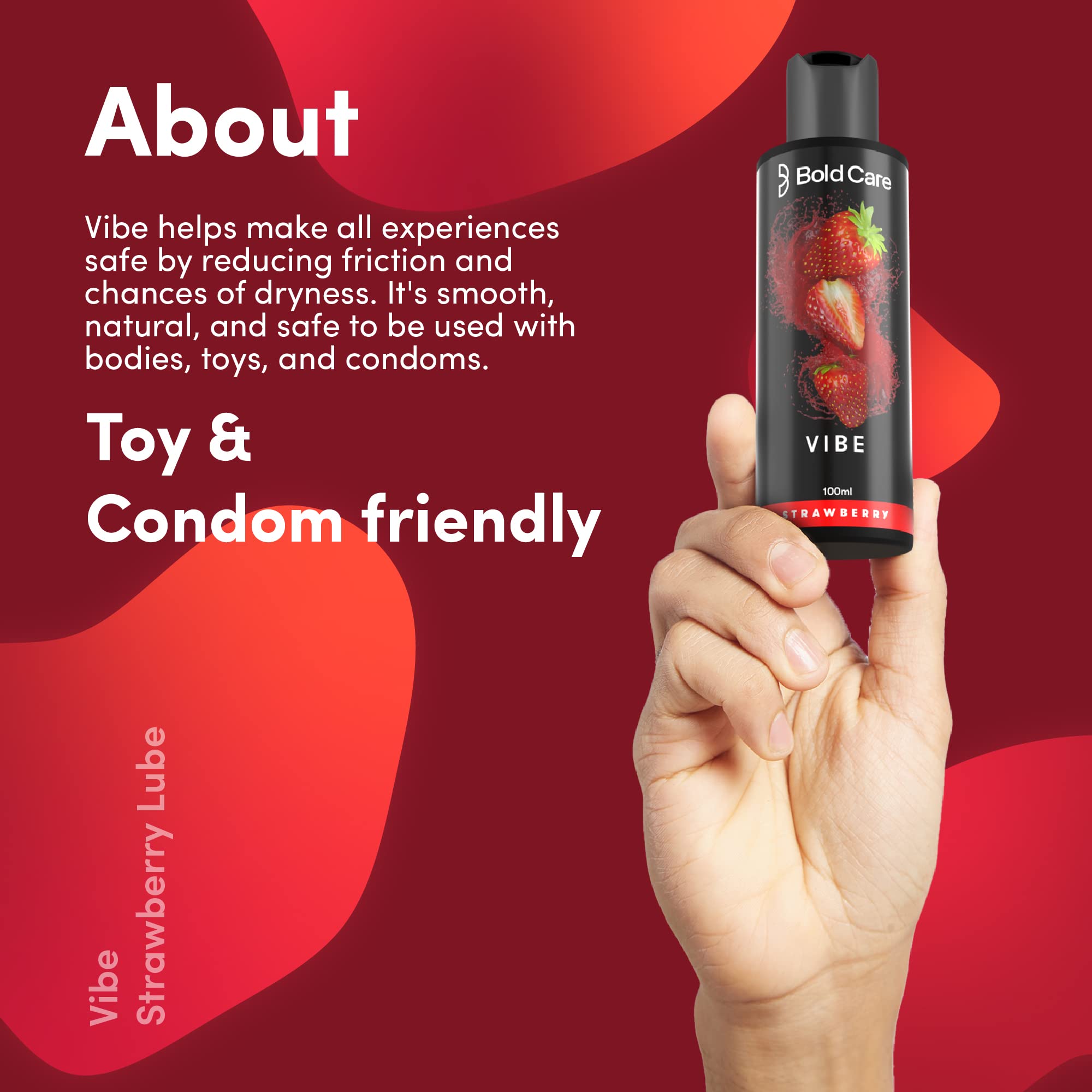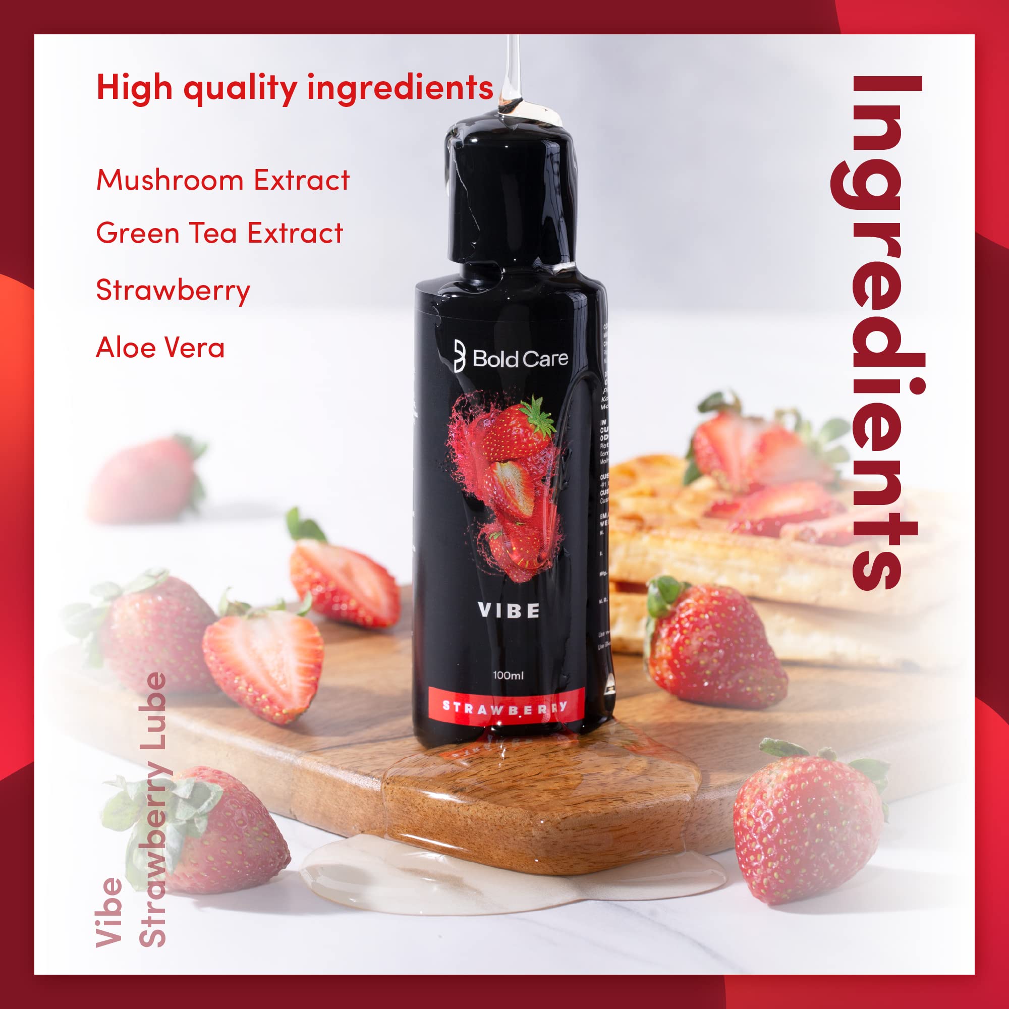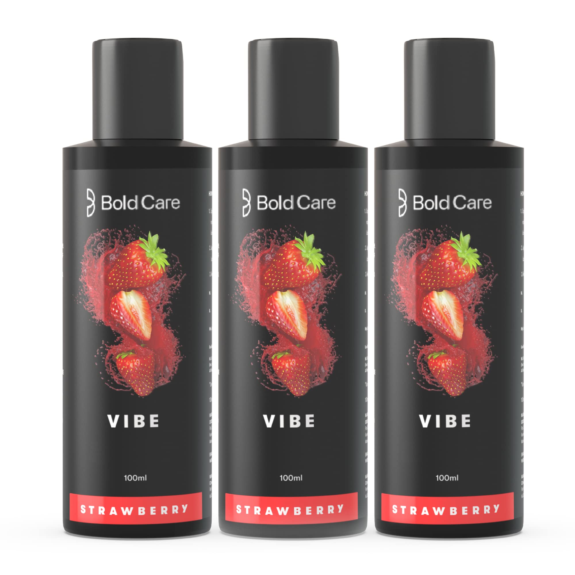 Bold Care Vibe - Pack of 3 - Natural Personal Lubricant for Men and Women - Premium Strawberry Flavour - Water Based Lube - Skin Friendly Silicone and Paraben Free - No Side Effects - 300 ml