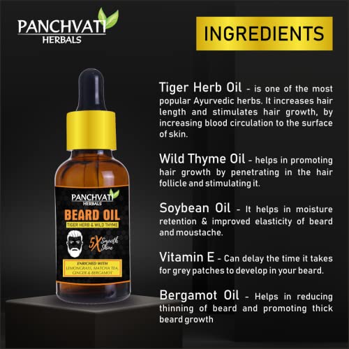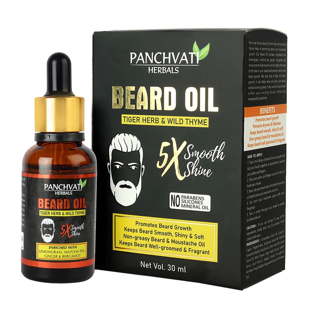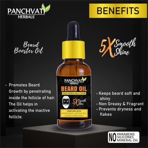 Panchvati Herbals Beard Oil 30 ML I Non-Greasy, Light Beard Oil For Men I Promotes Rapid Beard Growth, Keeps Beard Smooth, Shiny & Soft
