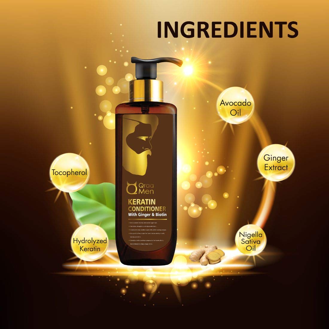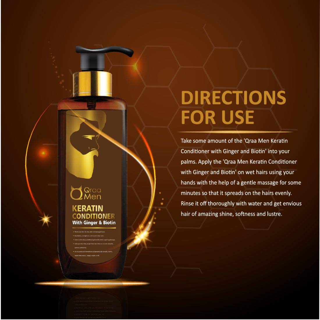 Get envious hairs that talk of shine smoothness and lustre with this Qraa men keratin conditioner with ginger and biotinâ that comes with an array of benefits in terms of hair care. This is exactly what you need to treat dry dull and damaged hairs in an effective manner for this solution helps repair and revitalize the tresses like never before. Most importantly this conditioner is free from dangerous chemicharsh metand any kind of synthetic itives that might to further damage. It has been especially formulated with rare and certified ingredients that talk of natural care.