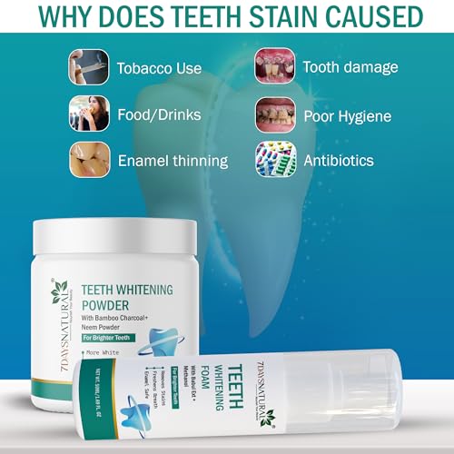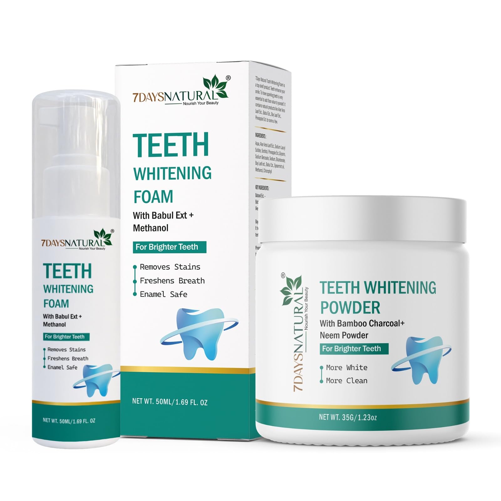 7 DAYS Teeth Whitening Magic Powder & Foam (Spearmint, 50 gm Each) Pack of -2