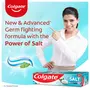 Colgate Active Salt toothpaste germs & scrubs them away with the goodness of active salt known for its properties. The Unique formula with salt microcrysthelps elevate daily oral care with stronger dental problems. Germs are known to cause different dental problems such as cavities plaque bad breath tartar gum problems yellowness etc. With Colgate Active Salt your family can have a worry-free smile as it works to fight these germs for a problem free mouth. It o has refreshing minty extracts that gives you a fresher breath. Colgate Active Salt toothpaste is a daily prevention toothpaste and comes with multiple benefits like preventing cavities plaque build-up tartar formation removes yellow stains giving you a healthier whiter smile. Recommended Usage: Put a pea size amount of our Colgate toothpaste on the head of the toothbrush. Insert the toothbrush into your mouth & use gentle short s to brush your teeth. For a better experience try with Colgate Slim Soft n Salt Toothbrush. For optimal results brush twice daily for 2min. Colgate toothpaste is always 100% vegetarian -free & . We care about our environment Colgate India is the nation's first to earn TRUE Zero Waste Platinum certification for all its four manufacturing sites in India from Green Business Certification Inc. (GBCI). This toothpaste is made in India with the highest quality standards and comes with 100% recyclable tube.