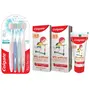 Colgate Kids Anticavity Toothpaste for 3-5 Years 160g (80g x 2) Natural Strawberry Flavour 0% Artificial SubstancesKids must brush their teeth at least 2 times a day- once in the morning and in the night. Colgate kids toothpaste comes with 0 percent artificial flavours preservatives sweetness and color so you don't have to worry about exposing your kid to artificial ingredients. It contains age appropriate fluoride level (supervise to minimize swallowing). This delicious natural strawberry flavoured premium toothpaste especially designed for kids of 3-5 years turns brushing battles into a breeze. Mom's often find it difficult to get their little ones to brush their teeth every day therefore Colgate Natural toothpaste for kids offers a fun way to ensure they enjoy good oral care habits early on! It protects against cavities and strengthens soft enamel of little teeth helping them scoot their way to healthy smiles. Developed with the help and expertise of Pediatric dentists the kids toothpaste lends a healthy and thorough clean. It ensures you and your kid are on track to building great brushing habits together without any hassle. Usage Instructions: Brush twice a day under parental supervision. Use a pea sized amount for supervised brushing to minimize swallowing. Ensure children spit out after brushing. In case of intake of fluoride from other sources consult a dentist or a doctor. Expiry- 24 months from manufacturing.Colgate Gentle Enamel Ultra Soft Bristles Manual Toothbrush for adults 4 Pcs (Buy2 Get 2) Soft Bristles for Enamel CareMulticolorColgate introduces its new range of ultra-soft toothbrushes â Colgate Gentle. This range has been specially designed with dentists to offer the gentlest care for your teeth and is endorsed by the Indian Dental Association. Tooth enamel is the hardest substance in the human body. It protects our teeth from decay wear and acidic substances. Once your tooth enamel is damaged it cannot be replaced. Therefore using a toothbrush which is gentle on your teeth is important to protect enamel. Colgate Gentle Enamel Toothbrush is a super-soft toothbrush with 150% more soft slim tip bristles which wrap around teeth enabling complete gentle protection. Made especially for sensitive teeth Colgate Gentle Enamel Care Toothbrush comes with dual bristle technology to better fit and clean your tooth surface. The outer layer is softer for comfortable protection while the inner layer is firmer for better cleaning. The wide brush head provides greater coverage has 6X deeper reach and the flexible neck reduces pressure on your gums. Experience the gentlest and superior care with Colgate Gentle Enamel Toothbrushes