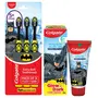 Colgate Kids Batman Manual Toothbrush Extra-soft Bristles and Built-in Tongue Cleaner Compact Head and Non-Slip Handle (Pack of 3Multicolor)Kids must brush their teeth at least 2 times a day and Colgate Kids Batman Toothbrush is a fun way to encourage good oral care habits early on! This attractive extra-soft bristle toothbrush has extra soft bristles especially designed for children. It is ideal for kids of age 5 years and above who have baby teeth or developing permanent teeth. Extra soft multi-height bristles on the toothbrush effectively clean big and small teeth while the raised tip helps clean hard to reach back teeth. The kid's toothbrush features a well-rounded handle; a thumb grip offering comfortable hold; a suction cup at the base for easy and fun upright storage and a soft plus safe tongue cleaner on the back of the toothbrush head. Cleaning teeth could never have been more fun! Developed with the help and expertise of Pediatric dentists Colgate offers a healthy and thorough clean. The toothbrush helps clean beyond teeth so your kid's smile only gets brighter and cleaner.Colgate Batman Anticavity Toothpaste For Kids - 80g (Bubble Fruit Flavour)Kids must brush their teeth at least 2 times a day and Colgate Kids Batman Toothpaste is a fun way to ensure they enjoy good oral care habits early on! This delicious fruit flavoured toothpaste is especially designed for children of age 6 years and above who have newly erupted or developing permanent teeth. The toothpaste effectively cleanses their mouth leaving it fresh. The kid's toothpaste also provides clinically proven cavity and enamel protection. Sparking colourful gel of Colgate bubble fruit toothpaste makes brushing fun for kids. Developed with the help and expertise of Pediatric dentists Colgate offers a healthy and thorough clean. It ensures your kid's smile gets brighter and cleaner with every use.