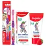 Colgate Kids Toothpaste with 0% Artificial Preservatives Colours Sweeteners for Whitening (6-9 Years Natural Strawberry Mint Flavour - 80g Tube)Kids must brush their teeth at least 2 times a day- once in the morning and in the night. Colgate kids toothpaste comes with 0% artificial flavours preservatives sweetness and color so you don't have to worry about exposing your kid to artificial ingredients. It contains age appropriate fluoride level (supervise to minimize swallowing). This delicious natural strawberry mint flavoured premium toothpaste especially designed for kids of 6-9 years turns brushing battles into a breeze. Mom's often find it difficult to get their little ones to brush their teeth every day therefore Colgate Natural toothpaste for kids offers a fun way to ensure they enjoy good oral care habits early on! It protects against cavities and strengthens enamel of growing permanent teeth so your kid is on the fast track to healthy smiles for life. Developed with the help and expertise of Pediatric dentists the kids toothpaste lends a healthy and thorough clean. Since the training wheels are off Colgate helps big kids take charge of their brushing and avoid any hassle for moms. Instructions: Brush twice a day under parental supervision. Use a pea-sized amount for supervised brushing to minimize swallowing. Ensure children spit out after brushing.Colgate Kids Barbie Manual ToothbrushMulticolor1 PieceKids must brush their teeth at least 2 times a day and Colgate Kids Barbie Toothbrush is a fun way to encourage good oral care habits early on! This attractive extra-soft bristle toothbrush has extra soft bristles especially designed for children. It is ideal for kids of age 5 years and above who have baby teeth or developing permanent teeth. Extra soft multi-height bristles on the toothbrush effectively clean big and small teeth while the raised tip helps clean hard to reach back teeth. The kid's toothbrush features a well-rounded handle; a thumb grip offering comfortable hold; a suction cup at the base for easy and fun upright storage and a soft plus safe tongue cleaner on the back of the toothbrush head.