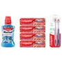 Colgate Max Fresh Bad Breath Treatment Toothpaste Red Gel Paste With Menthol For Super Fresh Breath 600g 150g X 4 Spicy FreshRefresh with Colgate Maxfresh toothpaste and seize your day because every day is a fresh start. The red gel toothpaste contains unique cooling crystals that give you an intense cooling while you brush and helps get rid of bad breath. Colgate is India's most trusted oral care brand. As a trusted partner we are committed to doing business with integrity and respect for all people and the world around you. Colgate offers quality oral care products including toothpastes and toothbrushesas well as expert dental health information. This toothpaste is 100% vegan and gluten free. We care about our environment Colgate India is the nation's first to earn True Zero Waste Platinum certification for all its four manufacturing sites in India from Green Business Certification Inc. (GBCI). This toothpaste is made in India with highest quality standards.Colgate Gentle UltraFoam Ultra Soft Bristles Manual Toothbrush for adults 2 Pcs Soft Bristles for Superior Clean MulticolorToothbrushColgate Plax Pepper Mint Mouthwash 0% Alcohol - 500 mlColgate Plax Peppermint Fresh mouthwash removes over 99% of germs that cause bad breath and cavities giving you a fresher and cleaner mouth than brushing alone. It has an extra refreshing peppermint flavour.This mouthwash contains no alcohol (non-alcoholic) hence does not cause any burning sensation when you use it. Yet it removes 99% germs instantly. You will experience an instant blast of freshness and 10X longer cooling sensation compared to brushing alone. This mouthwash gives you 24/7 control over bad breath with regular use. How to use: Fill the cap to its line (20ml). Rinse mouth with mouth wash thoroughly for 30 seconds gargle and expel. Do not swallow. This mouth wash can be used by both men and women When to use: After brushing An effective mouth freshner for your post meal needs. Colgate is India's most trusted oral care brand. As a trusted partner we are committed to doing business with integrity and respect for all people and the world around you. Colgate offers quality oral care products including toothpastes and toothbrushesas well as expert dental health information.