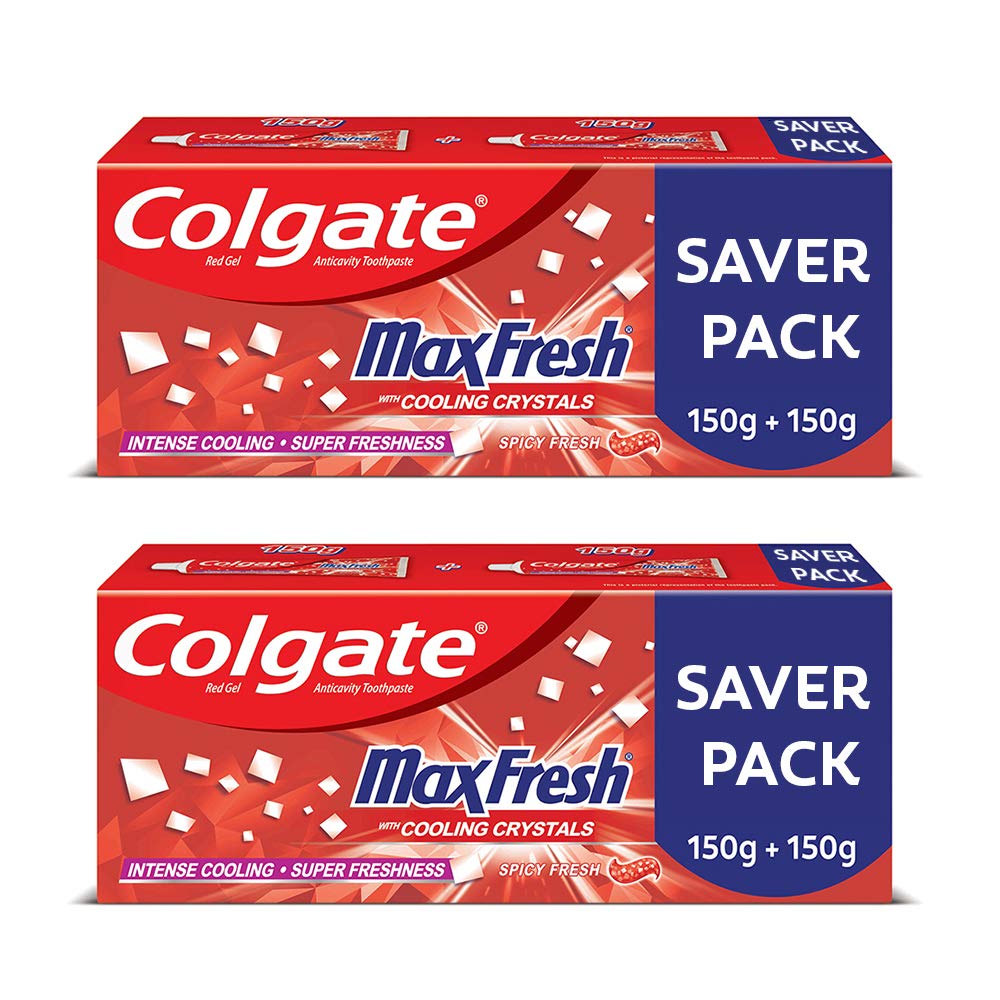 Colgate Maxfresh Toothpaste Red Gel Paste with Menthol For Super Fresh Breath 300g 150gx2 (Spicy Fresh)