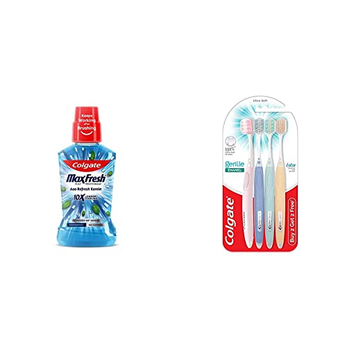 Colgate Plax Pepper Mint Mouthwash 0% Alcohol - 500 mlColgate Plax Peppermint Fresh mouthwash removes over 99% of germs that cause bad breath and cavities giving you a fresher and cleaner mouth than brushing alone. It has an extra refreshing peppermint flavour.This mouthwash contains no alcohol (non-alcoholic) hence does not cause any burning sensation when you use it. Yet it removes 99% germs instantly. You will experience an instant blast of freshness and 10X longer cooling sensation compared to brushing alone. This mouthwash gives you 24/7 control over bad breath with regular use. How to use: Fill the cap to its line (20ml). Rinse mouth with mouth wash thoroughly for 30 seconds gargle and expel. Do not swallow. This mouth wash can be used by both men and women When to use: After brushing An effective mouth freshner for your post meal needs. Colgate is India's most trusted oral care brand. As a trusted partner we are committed to doing business with integrity and respect for all people and the world around you. Colgate offers quality oral care products including toothpastes and toothbrushesas well as expert dental health information.Colgate Gentle Enamel Ultra Soft Bristles Toothbrush 4 Pcs (Buy2 Get 2) Soft Bristles for Enamel CareToothbrush
