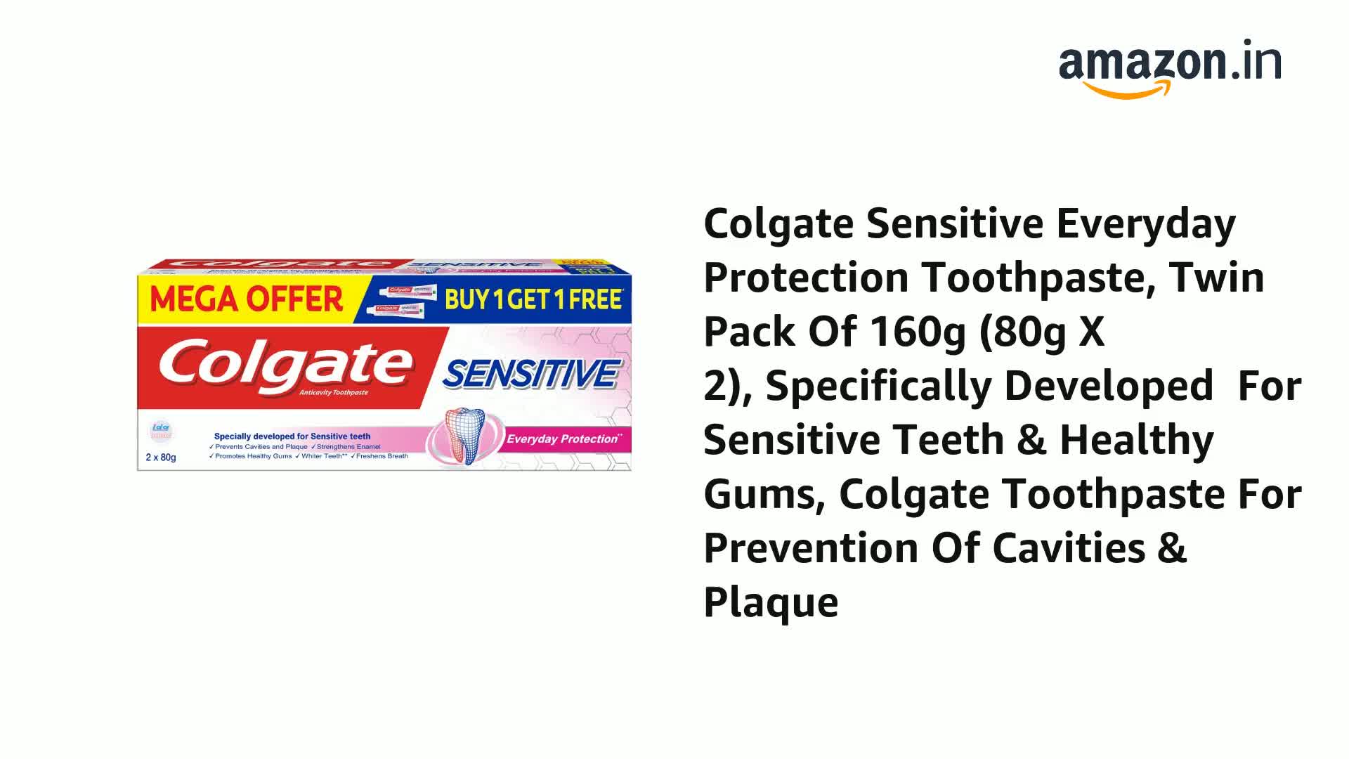 Colgate Sensitive Everyday Protection Toothpaste provides sensitivity protection helps protect against cavities fight tartar promote healthy gums and remove plaque with everyday brushing This toothpaste is  IDA certified  It's clinically proven formula provides FAST RELIEF within 2 weeks of use LONG-TERM RELIEF with regular use and builds INCREASING PROTECTION. Colgate Sensitive Everyday Protection Toothpaste provides necessary protection for sensitive teeth And also gives prevention against dental problems like Plaque Tartar build-up Cavities. Everyday Brush your teeth twice for 2 minutes with Colgate toothpaste rinse with mouthwash for 30 seconds & replace your toothbrush every 3 months to keep teeth & gums healthy preventing tooth decay gum disease & bad breath.It is 100% vegetarian gluten-free & Paraben-free. We care about our environment Colgate India is the nation's first to earn TRUE Zero Waste Platinum certification for all its four manufacturing sites in India from Green Business Certification Inc. (GBCI). This toothpaste is made in India with the highest quality standards.