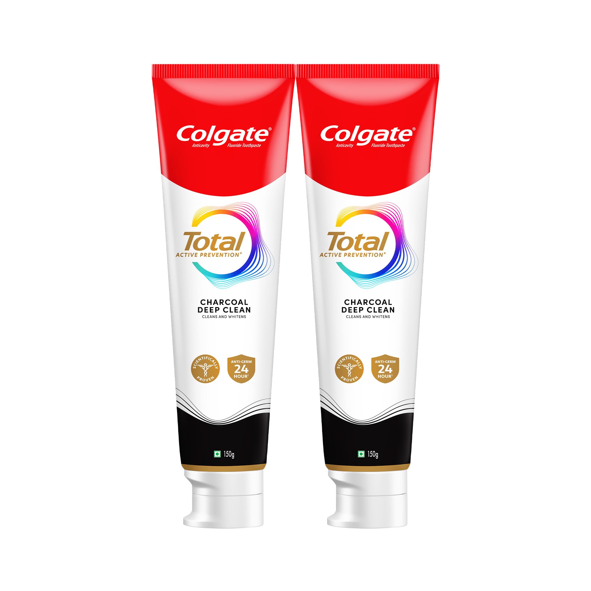 Only 20% of the germs in your mouth are on your teeth the rest 80% are on gums tongue and cheeks. Colgate Total Charcoal Deep Clean is an antibacterial toothpaste with dual Zinc arginine technology that actively seeks out bacteria and fights germs on teeth tongue cheeks and gums giving you Whole Mouth Clean for 12 hours. It is infused with micro-charcoal particles to provide a deep clean. Colgate Total provides more benefits than before - helping prevent cavities plaque build-up tartar formation gingivitis and sensitivity. It gives you fresh breath protects your enamel and removes stains giving you a healthier whiter smile Colgate is India's Most Trusted oral care brand and is IDA certified. This toothpaste is 100% vegetarian and gluten-free and responsibly made.This toothpaste is made in India in our manufacturing unit that is awarded with True Zero Waste Platinum Certification.