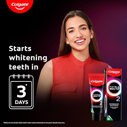 NOTICEABLY WHITER TEETH in 3 DAYS: Colgate Visible White O2's Active Oxygen technology starts whitening your teeth in 3 days and offers you noticeably whiter teeth than ever before when used as directed on the pack.