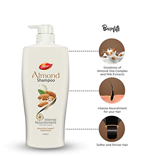 Dabur Almond Shampoo - With Almond-Vita Complex & Milk Extracts for Dull Dry and Weak Hair - 650 mlDabur Almond Intense Shampoo is a premium quality hair care product that contains the goodness of almond oil and milk which are known for their nourishing and moisturizing properties. This shampoo gently cleanses your hair leaving it soft smooth and manageable. The unique formula helps to strengthen your hair prevent breakage and reduce hair fall. It also helps to restore the natural shine of your hair and protect it from environmental damage. Ideal for all hair types this shampoo is free from harmful chemicals and is suitable for regular use. Get healthy beautiful hair with Dabur Almond Intense Shampoo.Dabur Red Toothpaste - 800g (200g x 4) | World's No.1 Ayurvedic Paste | Provides Germ Protection Cavity Protection Plaque Removal | Prevents Gum Bleeding Yellow Teeth Toothache Bad BreathDabur Red Paste is an unmistakable name when it comes to holistic Ayurvedic oral care. It is World's No.1 Ayurvedic Fluoride Free Paste and carries a unique blend of traditional Indian medicine and modern pharmaceutical technology taking the best from both worlds it provides complete protection from 7 Dental problems :cavities gingivitis plaque toothache bad breath yellow teeth plus weak teeth and gums. It also provides 35% betterment on oral care hygiene index in comparison to other regular toothpastes . It is a complete oral care solution for your entire family as it is suitable for kids too. Our other specialized oral care product include Dabur Red Gel â Ayurvedic Gel for freshness & effective oral care and Dabur Lal Dant Manjan tooth powder for strong teeth & healthy gums. *Disclaimer: World's No. 1 Ayurvedic Paste as per the Value Share by "Mordor Intelligence" in the Global Oral Care Market Report for the year 2021.
