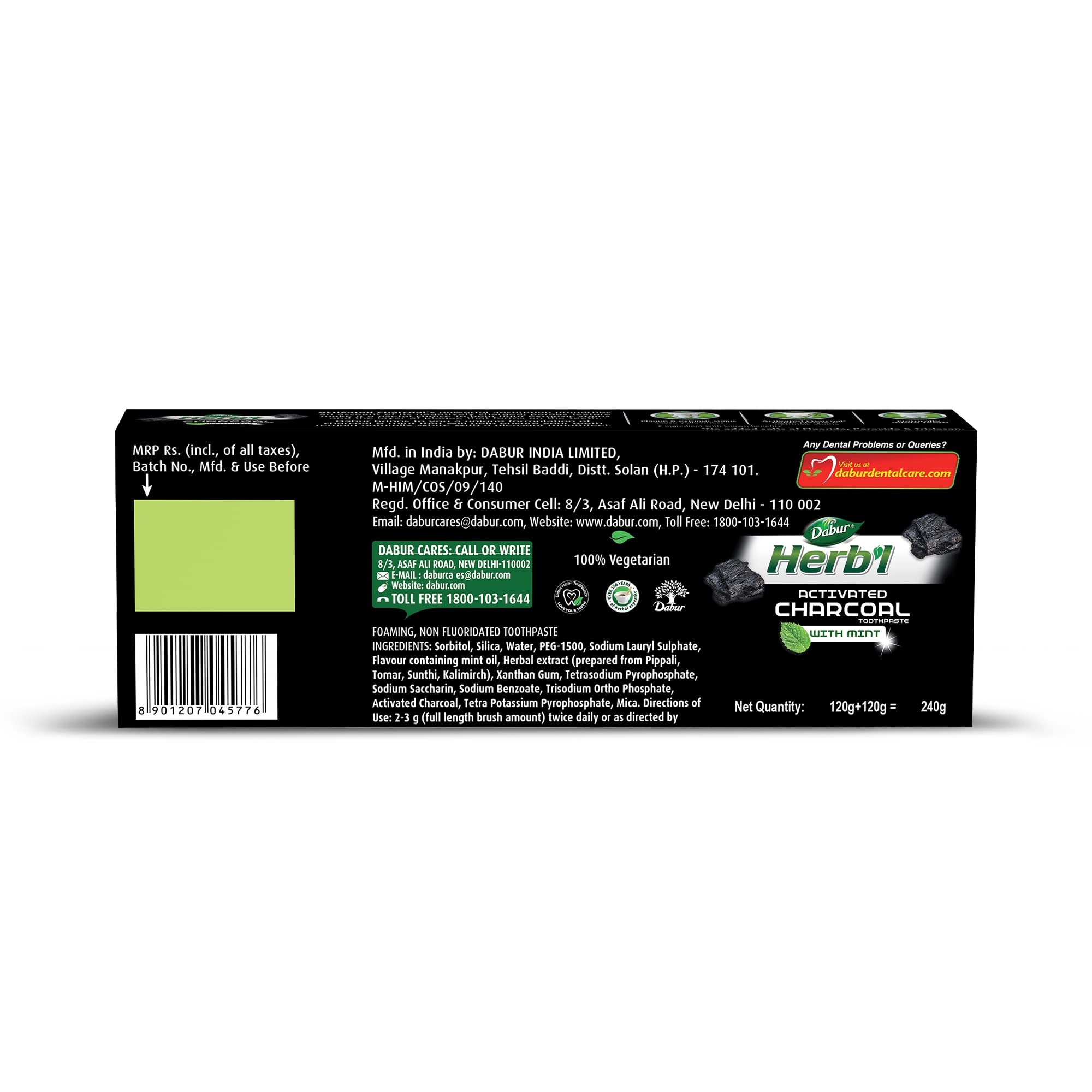Dabur brings you a unique formulation of charcoal & mint that will help ensure your teeth remain naturally white with a pleasant mouth feel. Activated Charcoal's powerful adsorption properties on account of its negatively charged porous texture make it a useful choice to help fight extrinsic stains and the layer of plaque that forms on the teeth.