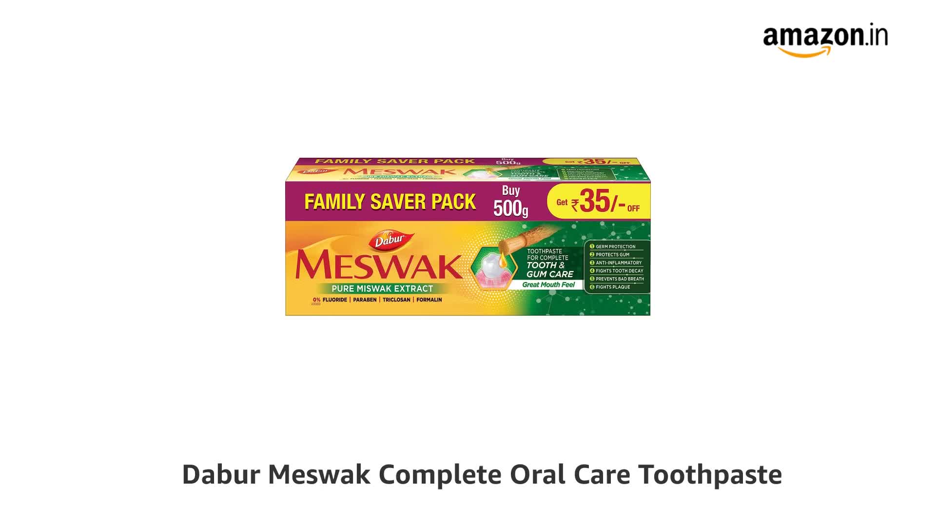 If you want to start your day with something that is truly unique go grab a pack of Dabur Meswak today. Dabur Meswak is made from pure extract of rare Miswak herb which grows slowly resisting the brutal forces of nature amidst the sand dunes of Africa and South Asia. Even a small portion of this herb is capable of providing Complete Oral Care to you. The ingredients of Miswak herb truly make Dabur Meswak unique. It has Resins which form a layer over the enamel - protecting against caries; Silica which removes stains; Alkaloids exerts a bactericidal effect and stimulatory action on gingival Essential oils stimulates the flow of saliva ehich works as an antiseptic Vitamin C helps in healing and repair of tissues etc. The best part of this unique toothpaste is the amazing mouthfeel it leaves behind which lasts the whole day.