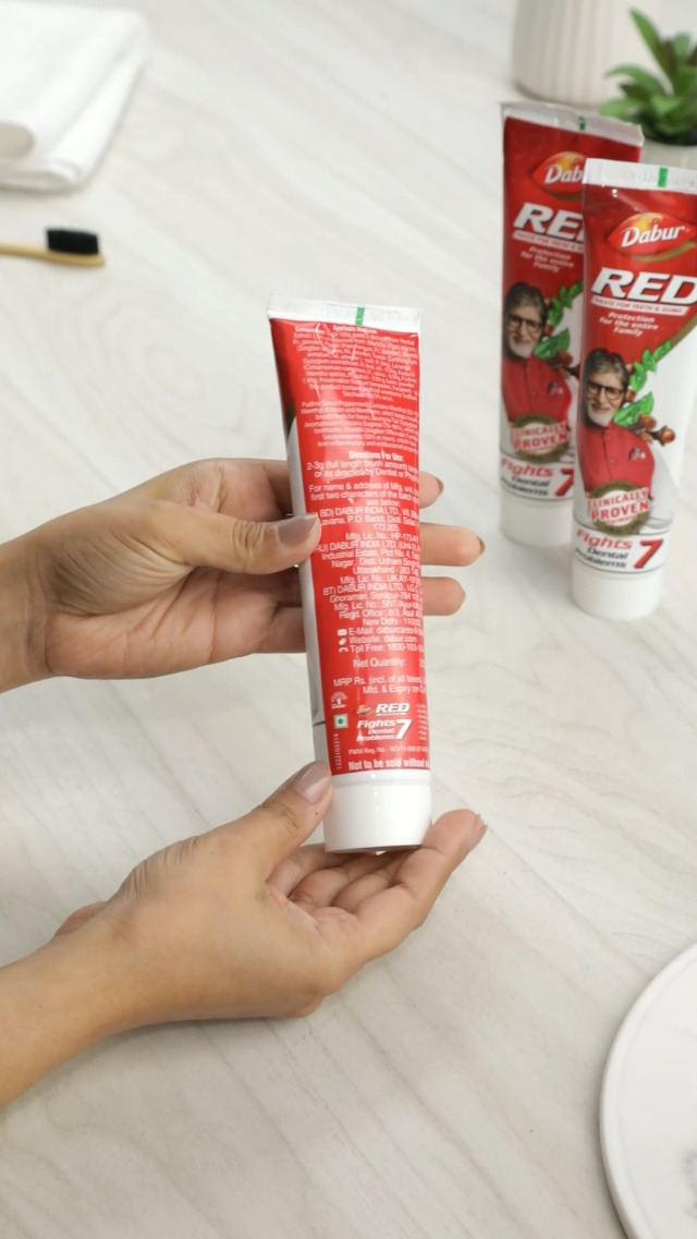 DABUR RED PASTE has a clinically proven formula that fights against 7 DENTAL PROBLEMS 1) TOOTHACHE 2)CAVITIES 3) plaque 4) germs 5) bad breath 6) yellowing and 7) bleeding gums. It is fluoride free and made with 13 potent ayurvedic ingredients including Pudina Satva that provides fresh breath Laung ka Tail that relieves toothache Shunthi that has anti-inflammatory and antibacterial properties and Tomar Beej that has antiseptic and antibacterial properties. It is clinically shown to provide a remarkable 35% improvement in oral care hygiene compared to regular toothpaste and provides complete protection for the entire family.