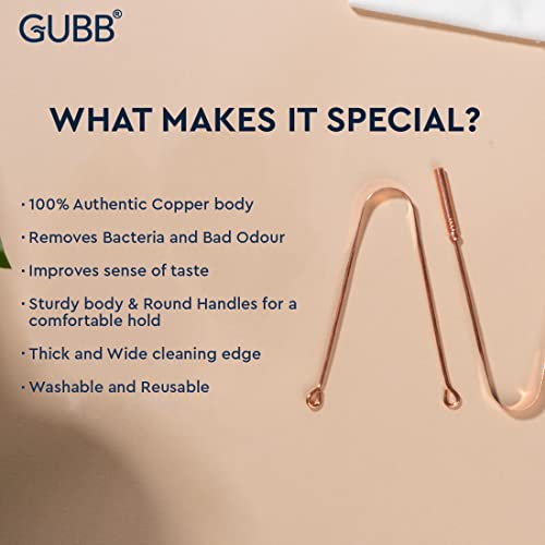 GUBB Copper Tongue Cleaner For Kids & Adults | Ayurvedic Tongue Scraper For Bad Breath (Round) - Pack of 3