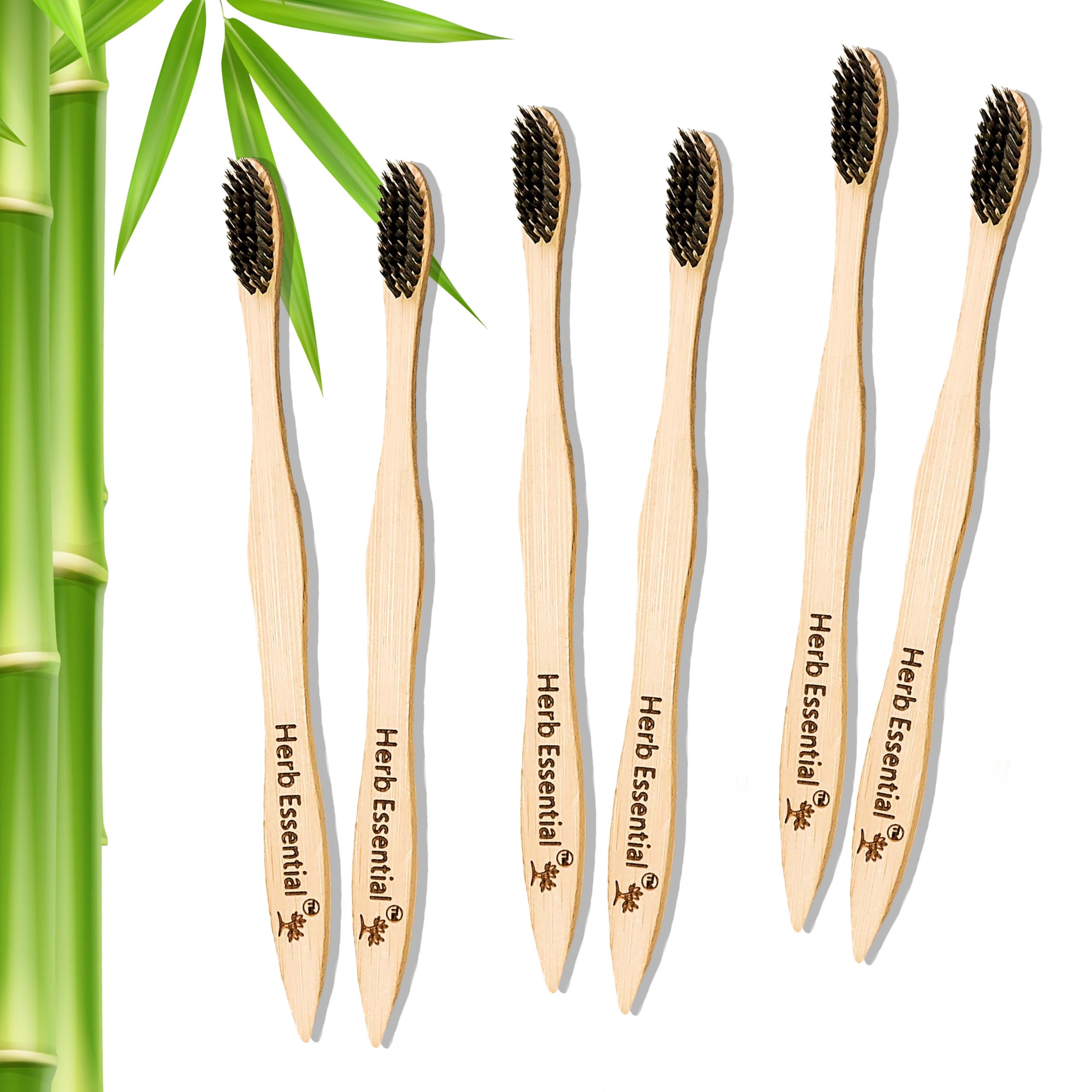 Herb Essential Bamboo Toothbrush Pack of 6 | with Ultra-Soft Charcoal activated Bristles | Natural Biodegradable and Ecofriendly Toothbrush Manual Adult