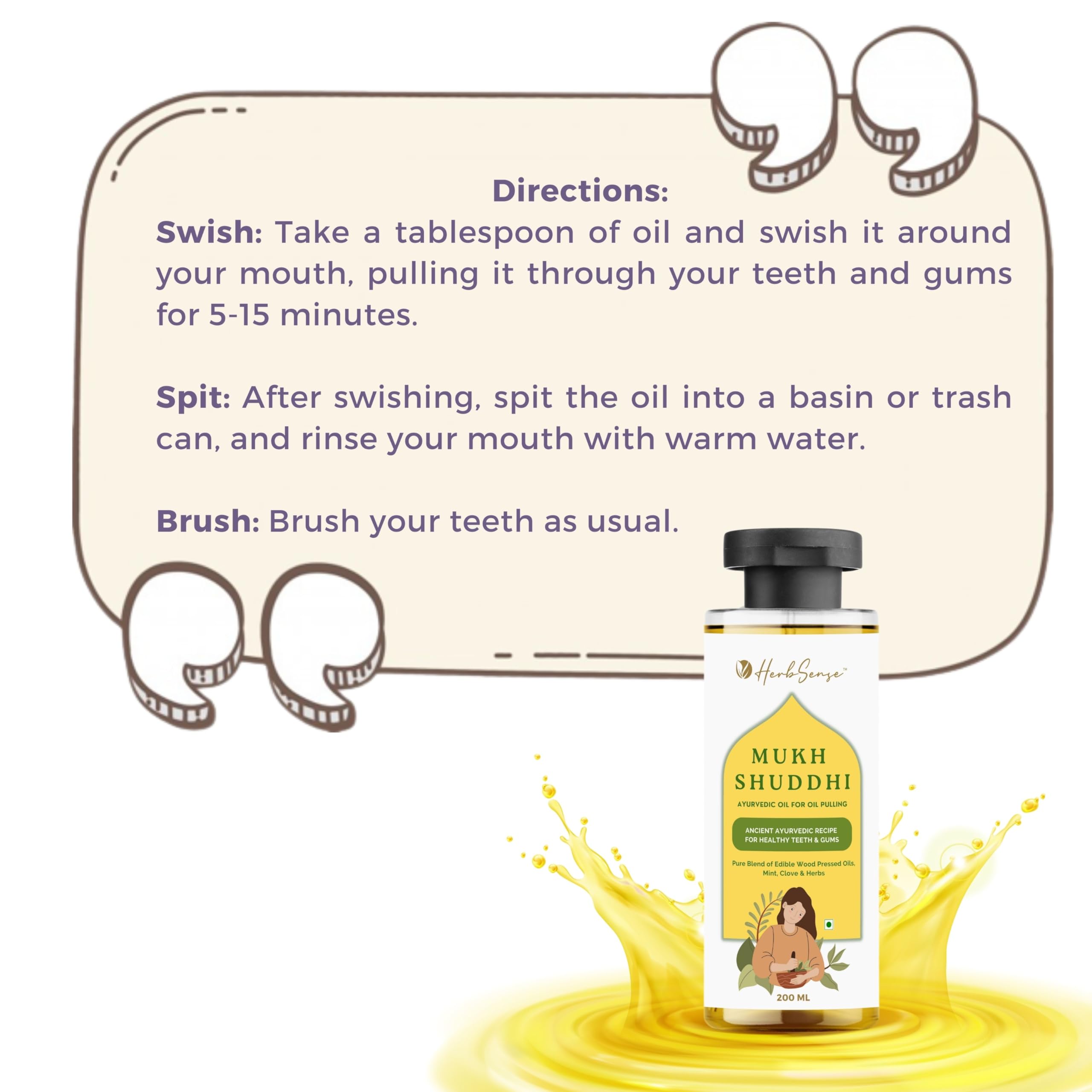 Herbsense Mukh Shuddhi Ayurvedic Oil Pulling For Mouth With Natural Coconut & Seasme Oil | Prevents Bad Breath -Enriched with Mint Clove & Herbs For Oral Care -Ancient Ayurvedic Recipe For Healthy Tees & Gums | Natural Mouth Wash 200ml