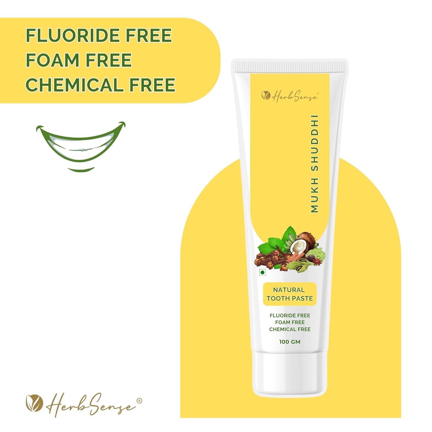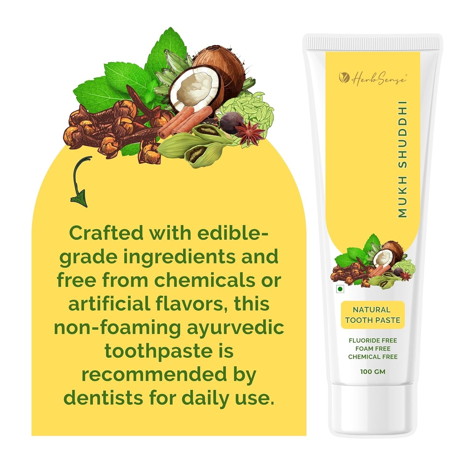Herbsense Mukh Shuddhi Natural Toothpaste Chemical Free 200gm | Organic Toothpaste | Remove Plaque & Bad breath | Fluoride & Foam Free Ayurvedic Herbal Paste 100g x 2
