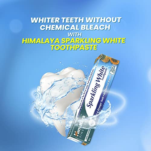 Himalaya Sparkling White Toothpaste has an advanced herbal formulation based on plant enzyme technology. It is the best teeth whitening toothpaste in India. The toothpaste contains Papain and Bromelain which are enzymes in papaya and pineapple that can help remove surface stains giving you whiter teeth by just using it for 2 weeks. It also plays a significant role along with Menthol in keeping the breath fresh and the teeth stain-free. The other natural ingredients in Himalaya Sparkling White Toothpaste like Miswak and Clove provide you with all-day protection from germs prevents discolouration & yellowing. Miswak helps prevent plaque and cavities toughen the gums and stop tooth decay. Its antiseptic properties eliminate oral bacteria and act as anti-inflammatory agents to protect gums. The Almond Essence in the whitening toothpaste is rich in flavonoids and phenolics. Cinnamon oil helps keep away bacteria responsible for tooth decay and gum disease. Himalaya brings the vision of herbal care to your daily life with our range of toothpaste enriched with ayurvedic ingredients. Himalaya Sparkling White Toothpaste is a budget-friendly natural and organic toothpaste. Scientists and herbalists at Himalaya have spent years researching the therapeutic benefits of herbs. We devote substantial time to authenticating the herb isolating its active marker testing its medicinal property and validating its safety and efficacy.