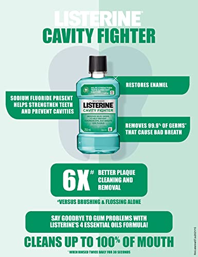 • The power of 4 essential oils combined with sodium flouride in Listerine Cavity Fighter mouthwash helps strenthen teeth and prevent cavities