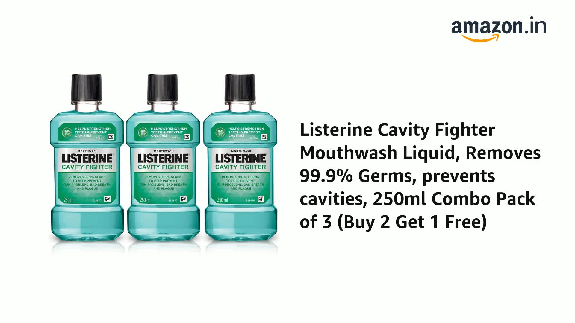 • This pack contains 3 units of Listerine Cavity Fighter Mouthwash 250 ml