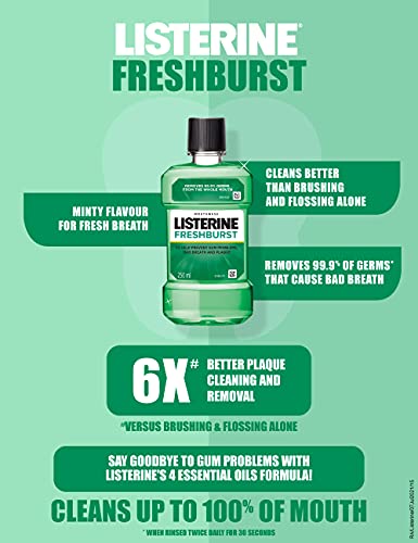 • With patented essential oil formulation Listerine Fresh Burst Mouthwash deeply penetrates to remove bacteria in plaque biofilm