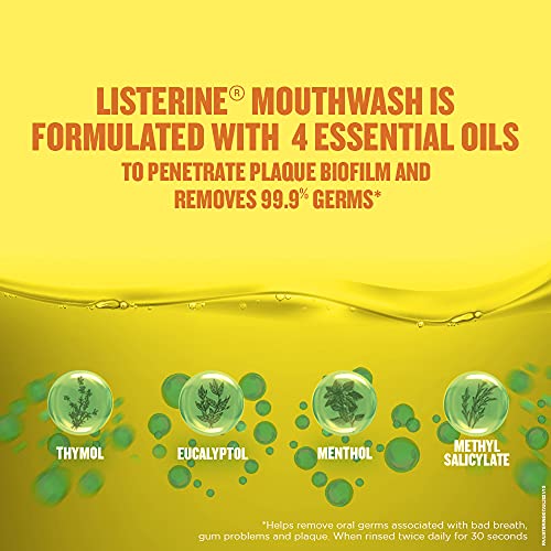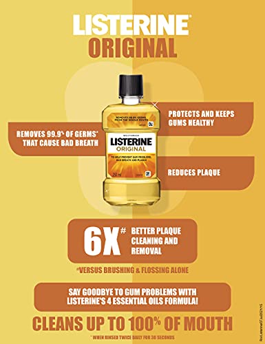 Original LISTERINE Mouthwash provides 24-hour protection against plaque bad breath and gum problems. A 30-second rinse with Original LISTERINE Mouthwash during your morning and night-time routines gives you 24-hour protection against germs that cause plaque and gum problems. WARNING: For external use only. Not to be swallowed. Keep out of reach of children. Not recommended for children below 12 years of age.
