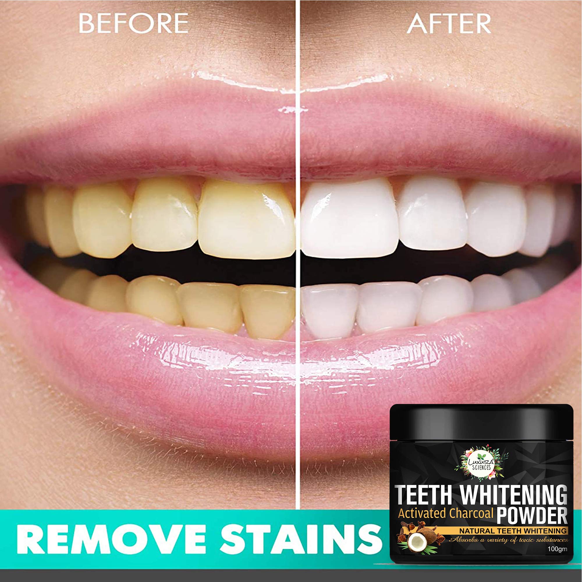 NATURAL SUPERIOR TEETH WHITENING POWDER FOR A SPARKLING BRIGHT SMILE are you looking for a natural and organic product to whiten stained or yellowed teeth? Our highly absorbent natural formula works to remove toxins and any form of stains that might be b