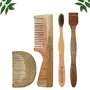 Mini Storify Truly Organic 1 Neem Beard Comb 1 Neem Handle Comb 100% Handmade |1 Neem adult toothbrush|1 Neem Tongue Cleaner Pack of 4