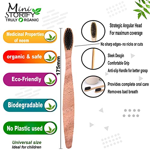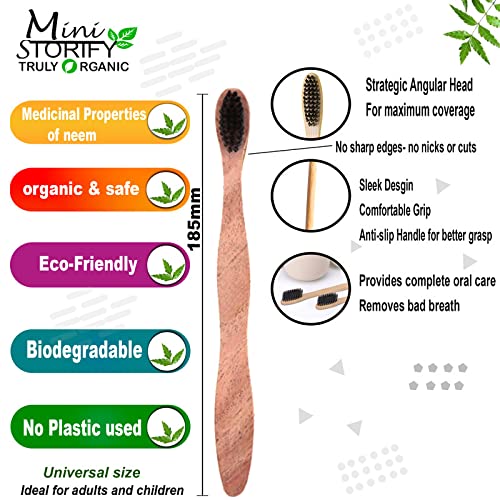 Mini Storify Truly Organic 2 and 1 Adults Neem Toothbrush with Activated Charcoal and Biodegradable Handle Natural (Pack of 3)