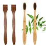 Mini Storify Truly Organic 2.Adult bamboo tooth brush - Charcoal Soft Bristles, 2.Pure Neem Wood Tongue Cleaner/Tongue Scraper For Adults (PACK OF 4)