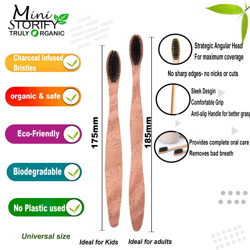 Neem is a recognized and germicide; no insects or bacteria ever come close to neem products.These handcrafted combs you can get an excellent stimulating effect as the comb teeth glide over your scalp. Gently press against the scalp and comb as usual. It is a good practice to comb more often, as this not only stimulates the scalp cells but keeps it disinfected. Made up of 100% ayurvedic neem wood.2-Bamboo Toothbrush with charcoal bristles is completely natural, destroy microorganisms to fight dental cavities.