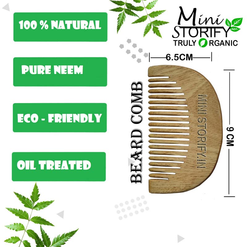 Mini Storify Truly Organic Pack of 4 1 Neem Beard Comb 1 Neem Handle Comb 1 Bamboo Adults Toothbrush 1 Bamboo Tongue Cleaner |